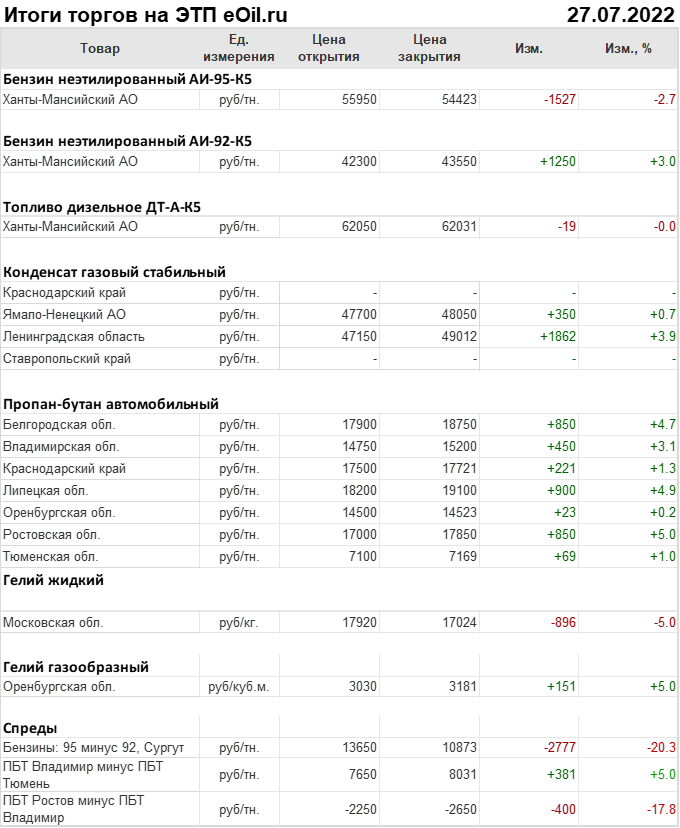 Итоги торгов на ЭТП eOil.ru 27 июля 2022