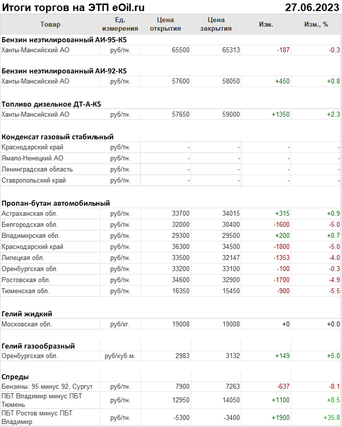 Итоги торгов на ЭТП eOil.ru 27 июня 2023
