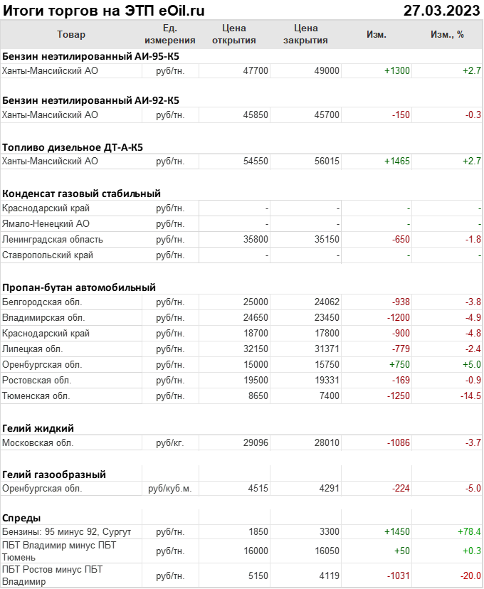 Итоги торгов на ЭТП eOil.ru 27 марта 2023