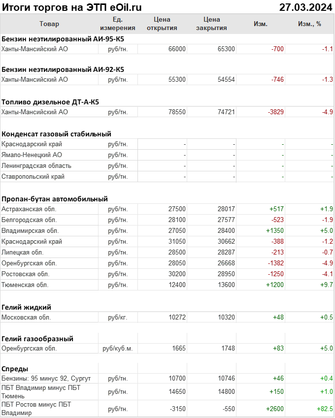 Итоги торгов на ЭТП eOil.ru 27 марта 2024