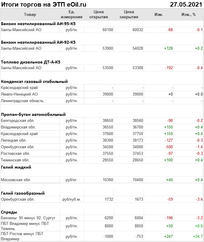 Итоги торгов на ЭТП eOil.ru 27 мая 2021