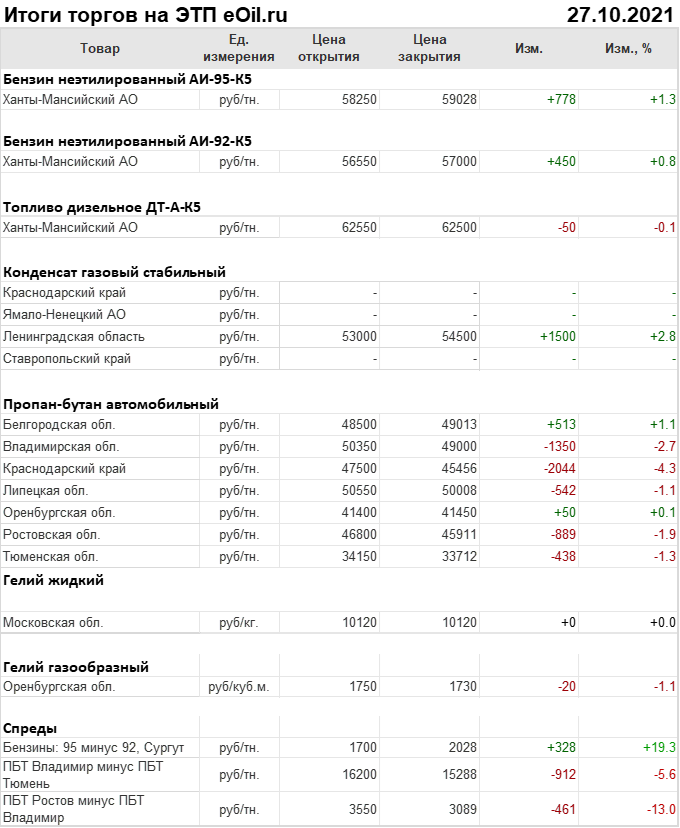 Итоги торгов на ЭТП eOil.ru 27 октября 2021