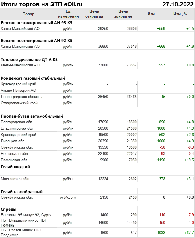 Итоги торгов на ЭТП eOil.ru 27 октября 2022