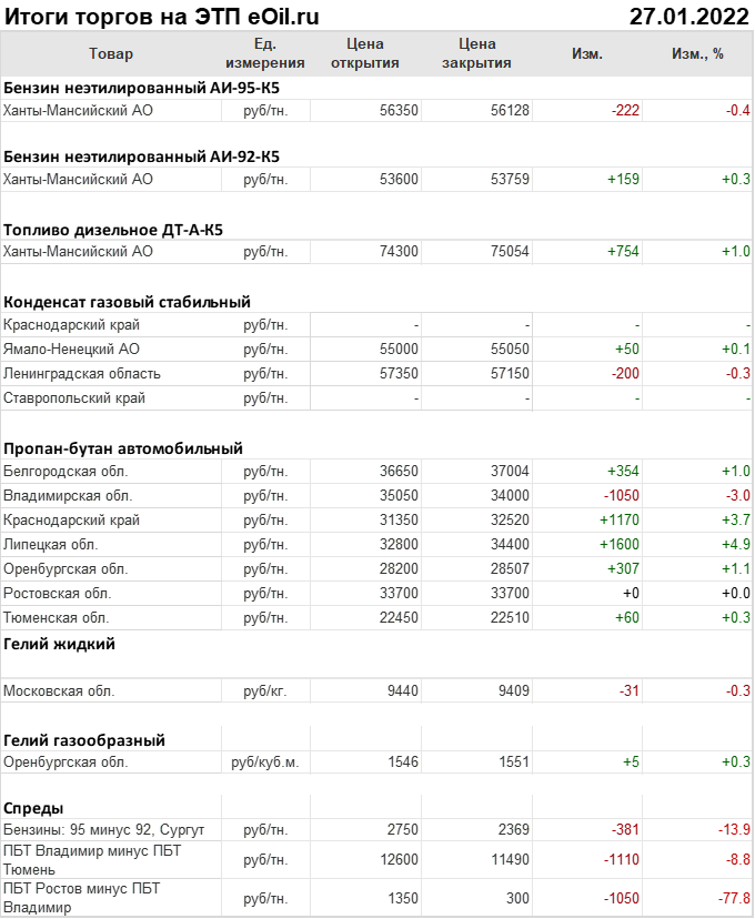 Итоги торгов на ЭТП eOil.ru 27 января 2022