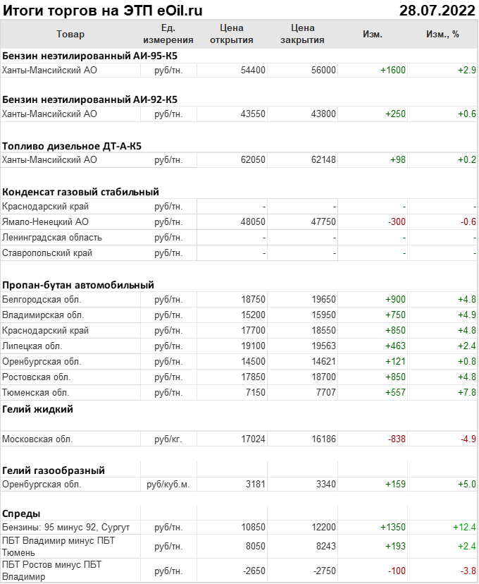 Итоги торгов на ЭТП eOil.ru 28 июля 2022