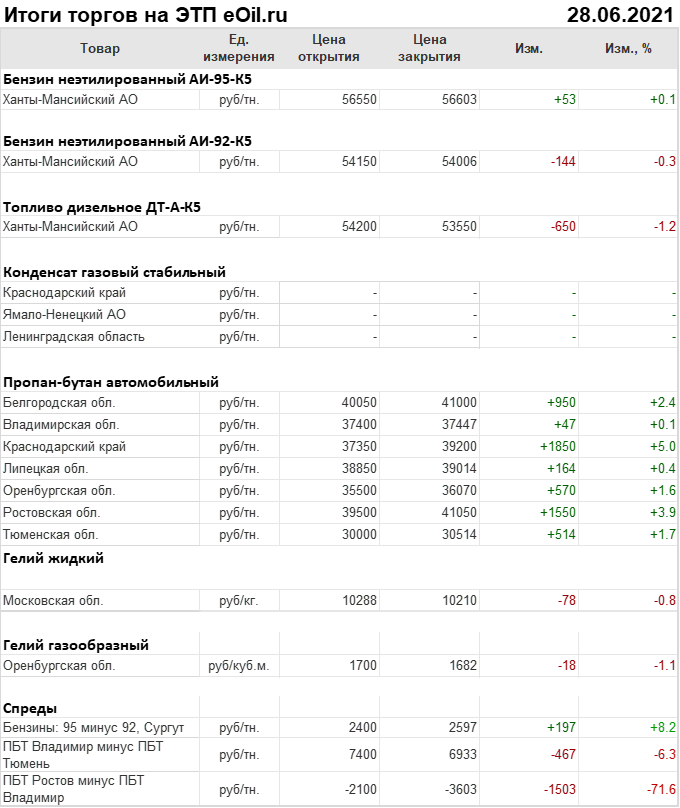 Итоги торгов на ЭТП eOil.ru 28 июня 2021