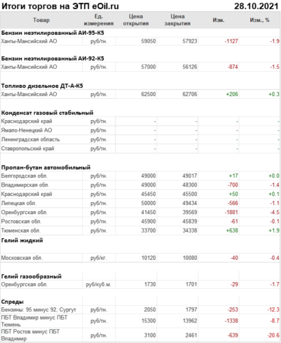 Итоги торгов на ЭТП eOil.ru 28 октября 2021