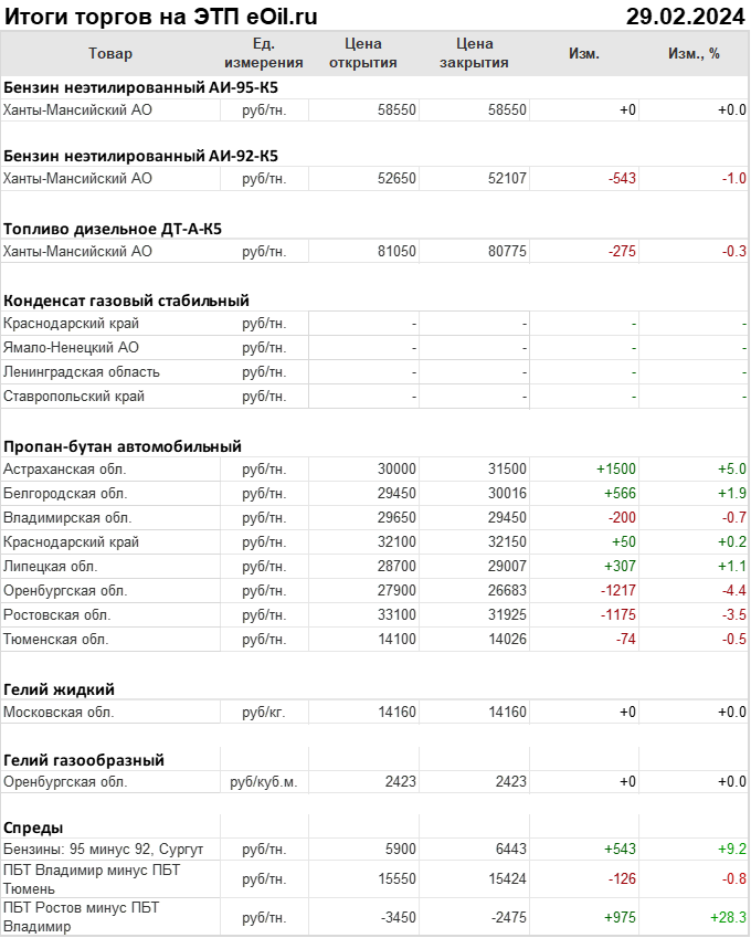 Итоги торгов на ЭТП eOil.ru 29 февраля 2024