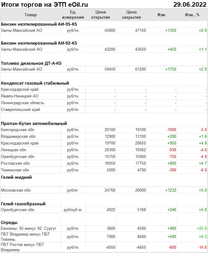 Итоги торгов на ЭТП eOil.ru 29 июня 2022