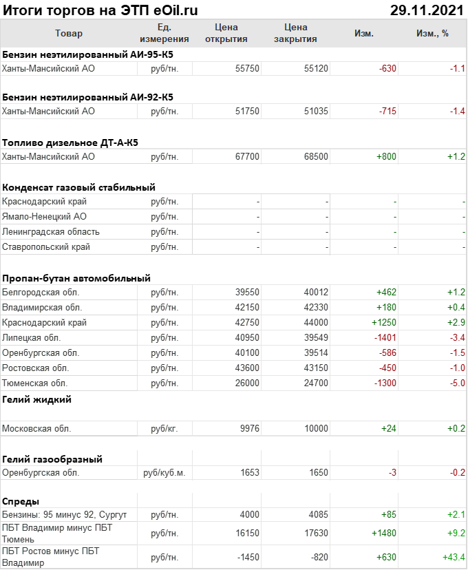 Итоги торгов на ЭТП eOil.ru 29 ноября 2021