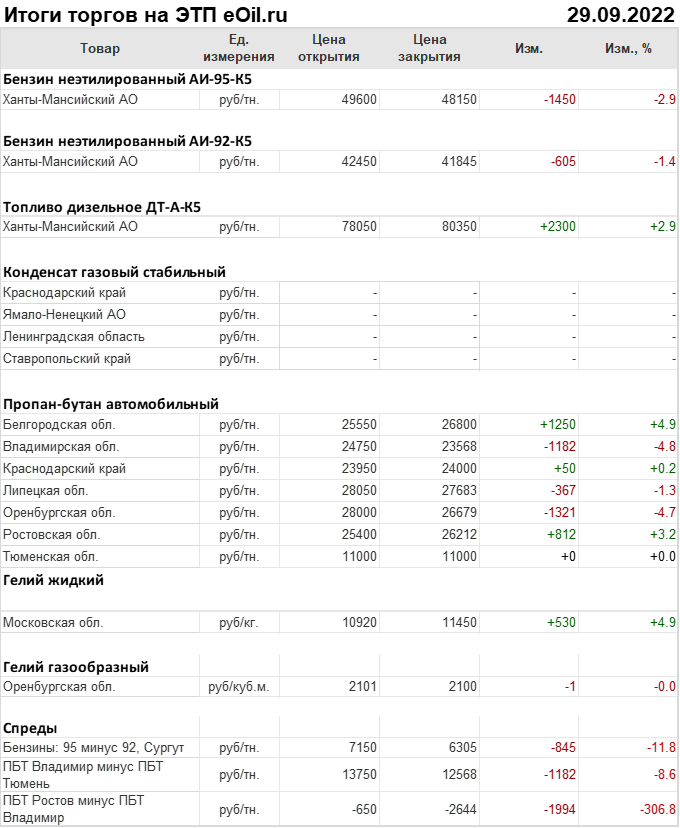 Итоги торгов на ЭТП eOil.ru 29 сентября 2022