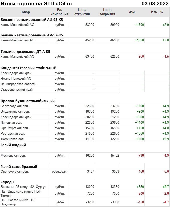 Итоги торгов на ЭТП eOil.ru 3 августа 2022
