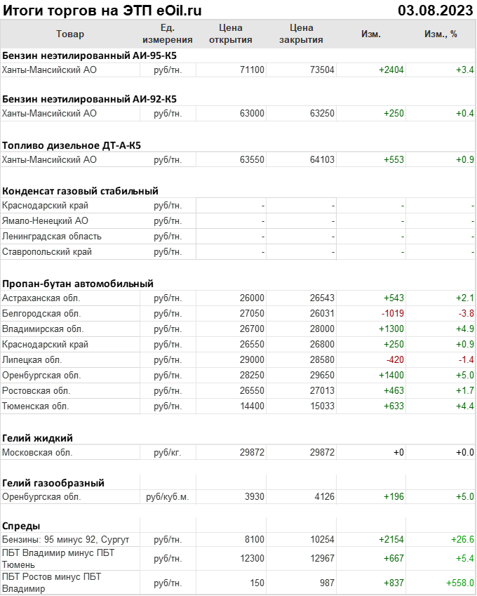 Итоги торгов на ЭТП eOil.ru 3 августа 2023