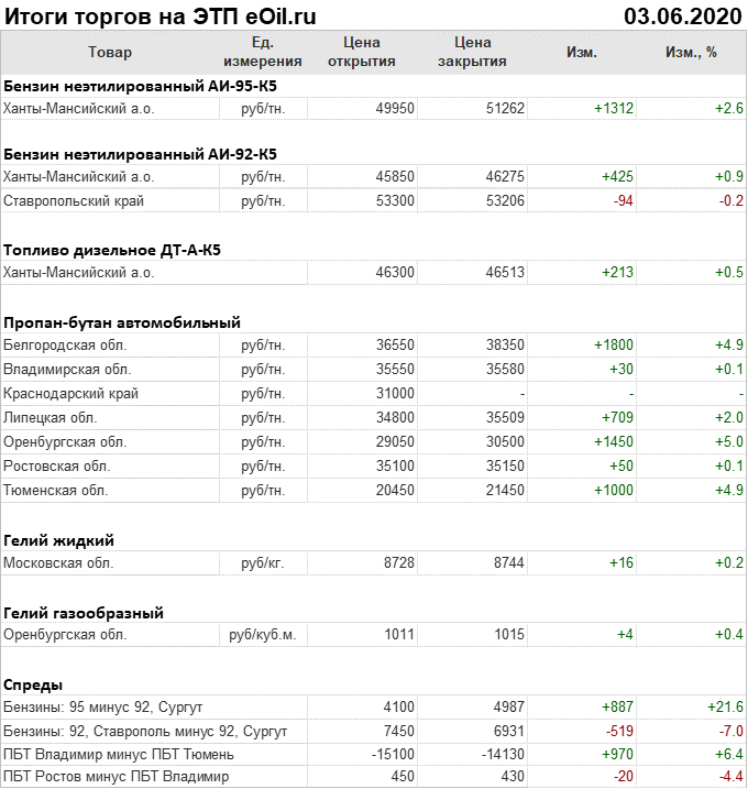 Итоги торгов на ЭТП eOil.ru 3 июня 2020