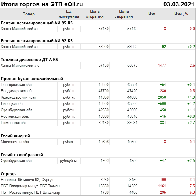 Итоги торгов на ЭТП eOil.ru 3 марта 2021