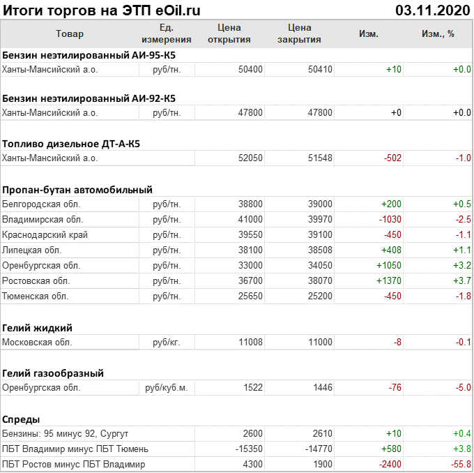 Итоги торгов на ЭТП eOil.ru 3 ноября 2020