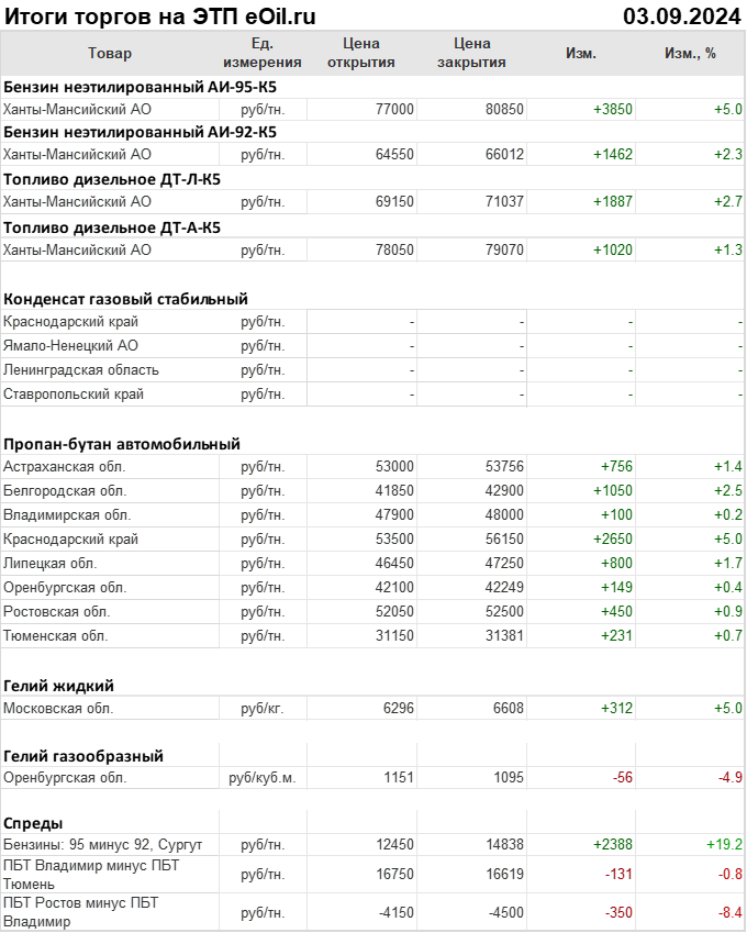 Итоги торгов на ЭТП eOil.ru 3 сентября 2024