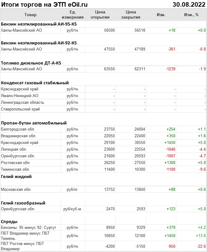 Итоги торгов на ЭТП eOil.ru 30 августа 2022