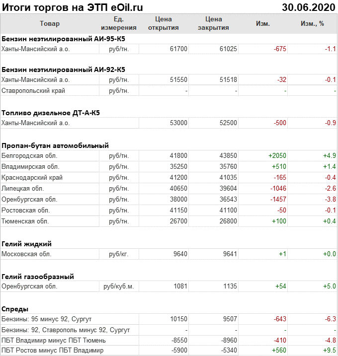 Итоги торгов на ЭТП eOil.ru 30 июня 2020