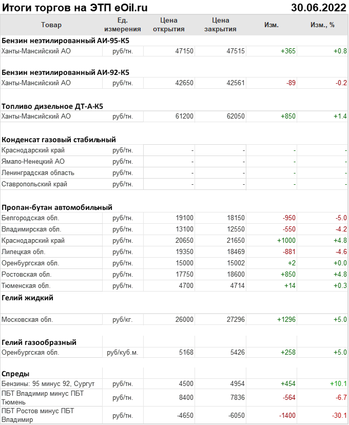 Итоги торгов на ЭТП eOil.ru 30 июня 2022