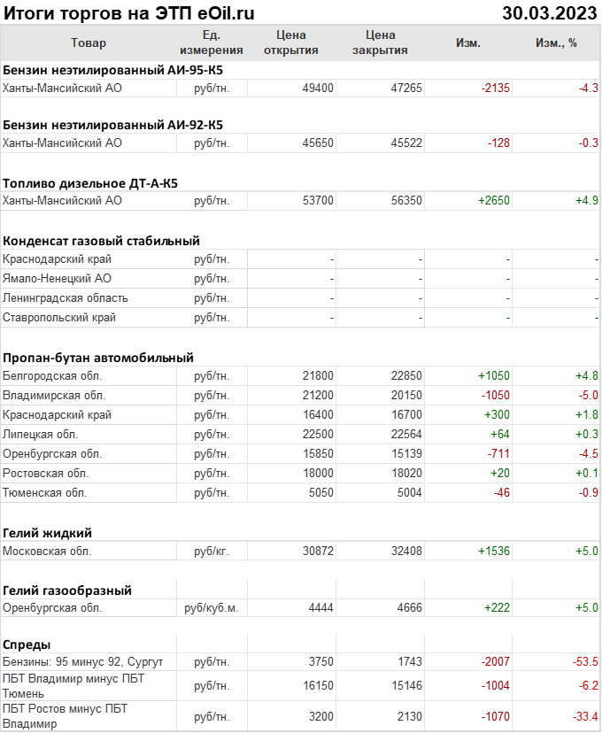 Итоги торгов на ЭТП eOil.ru 30 марта 2023