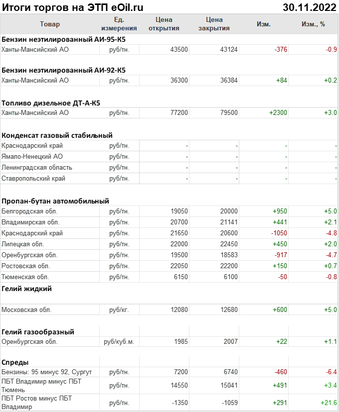 Итоги торгов на ЭТП eOil.ru 30 ноября 2022