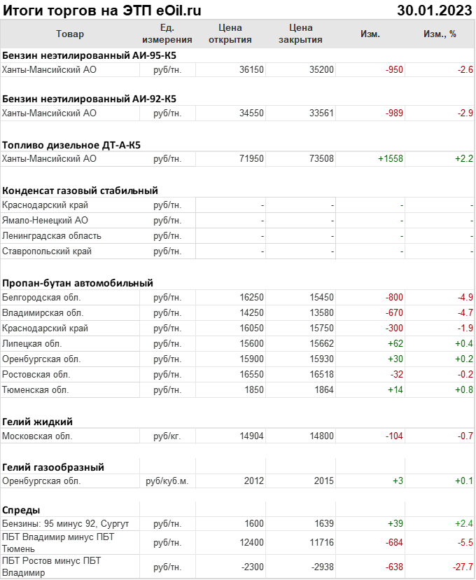 Итоги торгов на ЭТП eOil.ru 30 января 2023