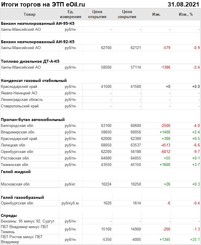Итоги торгов на ЭТП eOil.ru 31 августа 2021