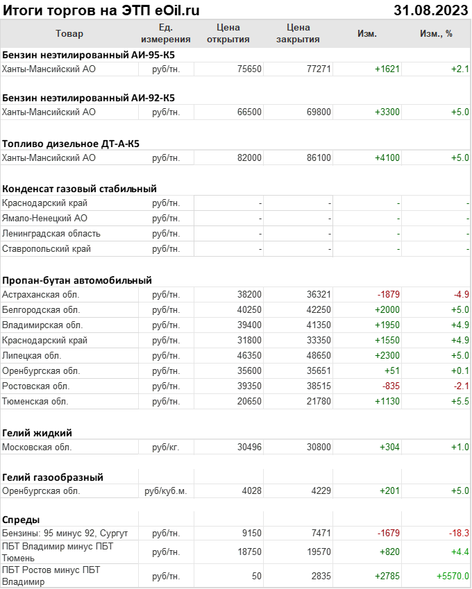Итоги торгов на ЭТП eOil.ru 31 августа 2023