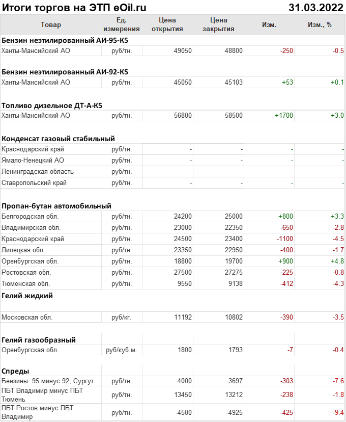 Итоги торгов на ЭТП eOil.ru 31 марта 2022
