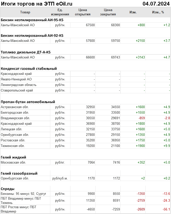 Итоги торгов на ЭТП eOil.ru 4 июля 2024
