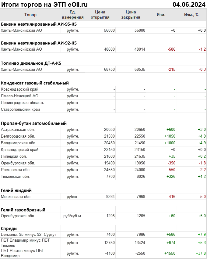 Итоги торгов на ЭТП eOil.ru 4 июня 2024