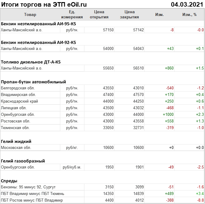 Итоги торгов на ЭТП eOil.ru 4 марта 2021