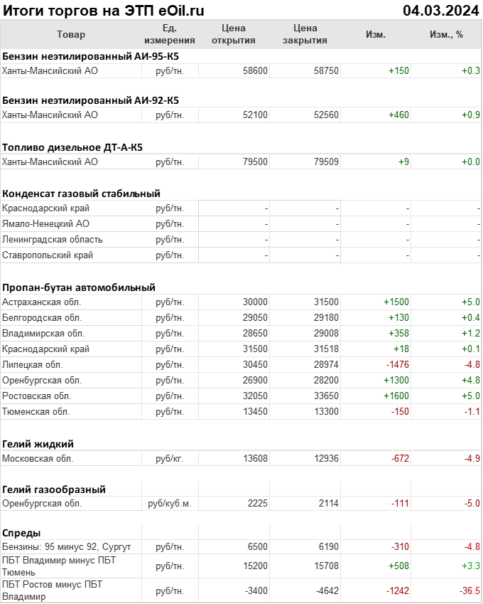 Итоги торгов на ЭТП eOil.ru 4 марта 2024