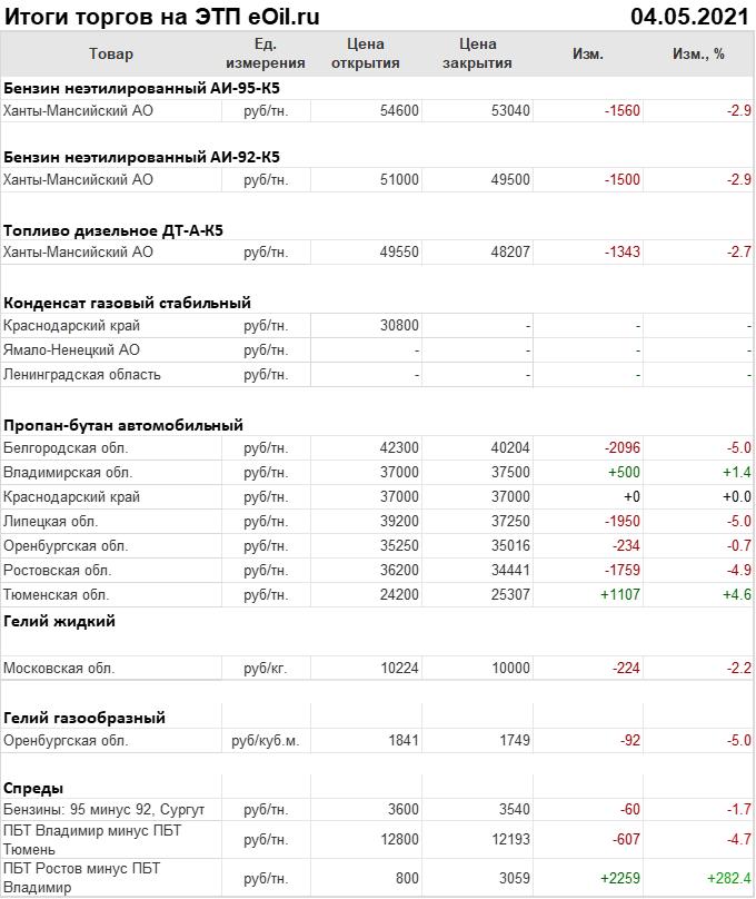 Итоги торгов на ЭТП eOil.ru 4 мая 2021