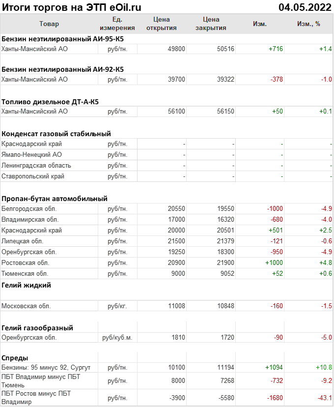 Итоги торгов на ЭТП eOil.ru 4 мая 2022