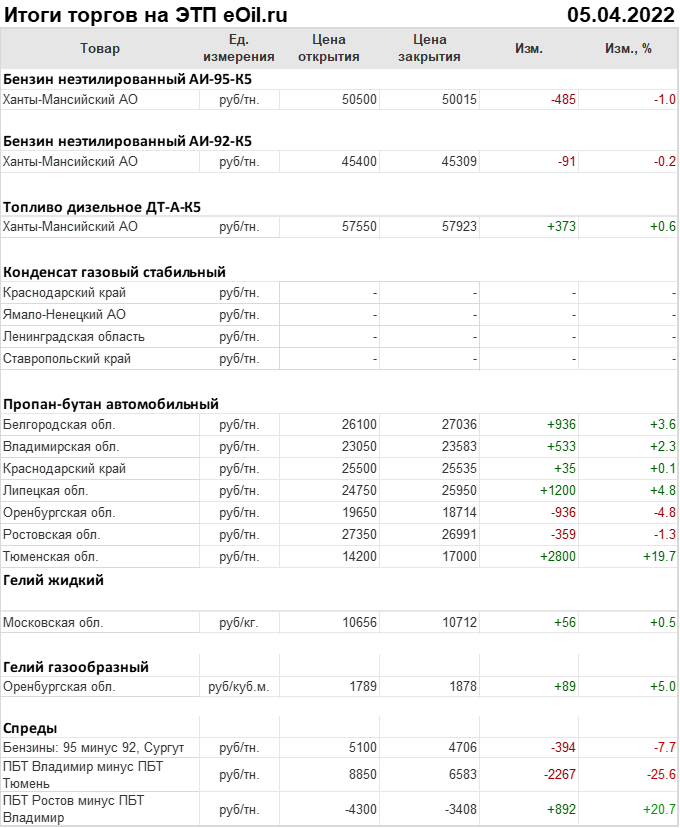 Итоги торгов на ЭТП eOil.ru 5 апреля 2022