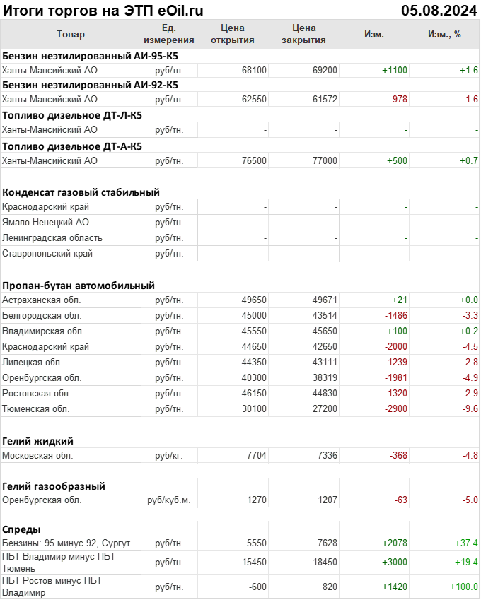 Итоги торгов на ЭТП eOil.ru 5 августа 2024