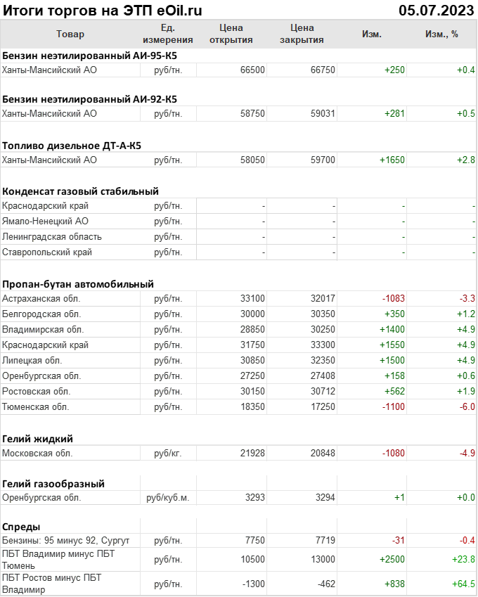 Итоги торгов на ЭТП eOil.ru 5 июля 2023