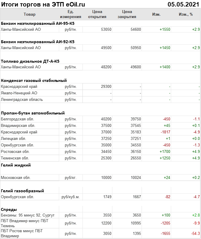 Итоги торгов на ЭТП eOil.ru 5 мая 2021