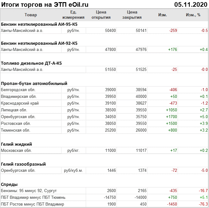 Итоги торгов на ЭТП eOil.ru 5 ноября 2020