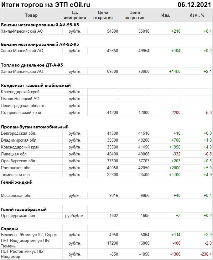 Итоги торгов на ЭТП eOil.ru 6 декабря 2021