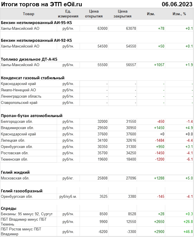 Итоги торгов на ЭТП eOil.ru 6 июня 2023