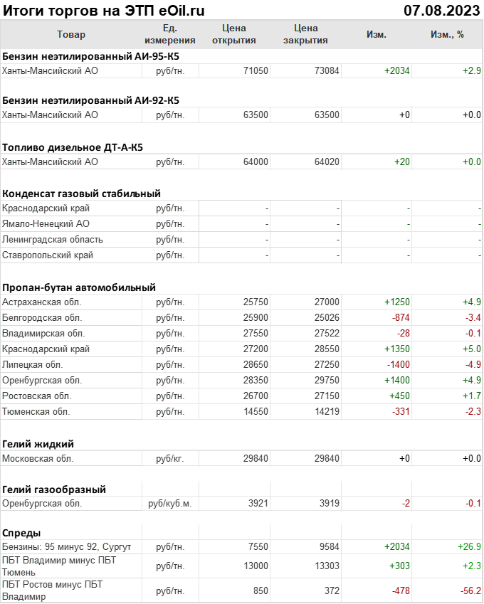 Итоги торгов на ЭТП eOil.ru 7 августа 2023