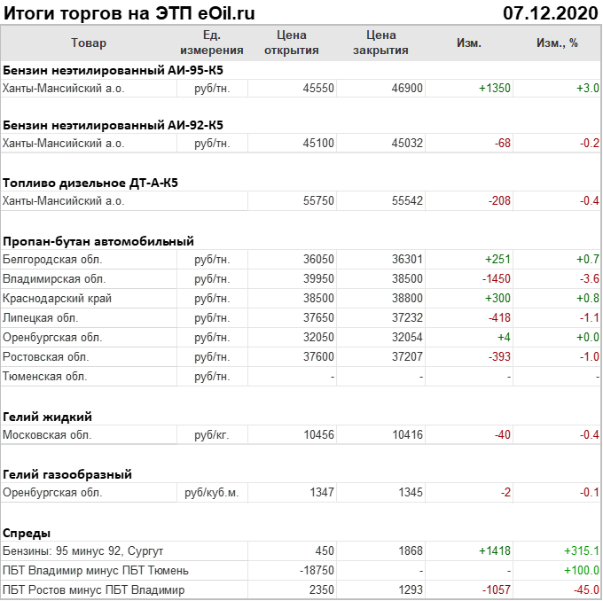 Итоги торгов на ЭТП eOil.ru 7 декабря 2020