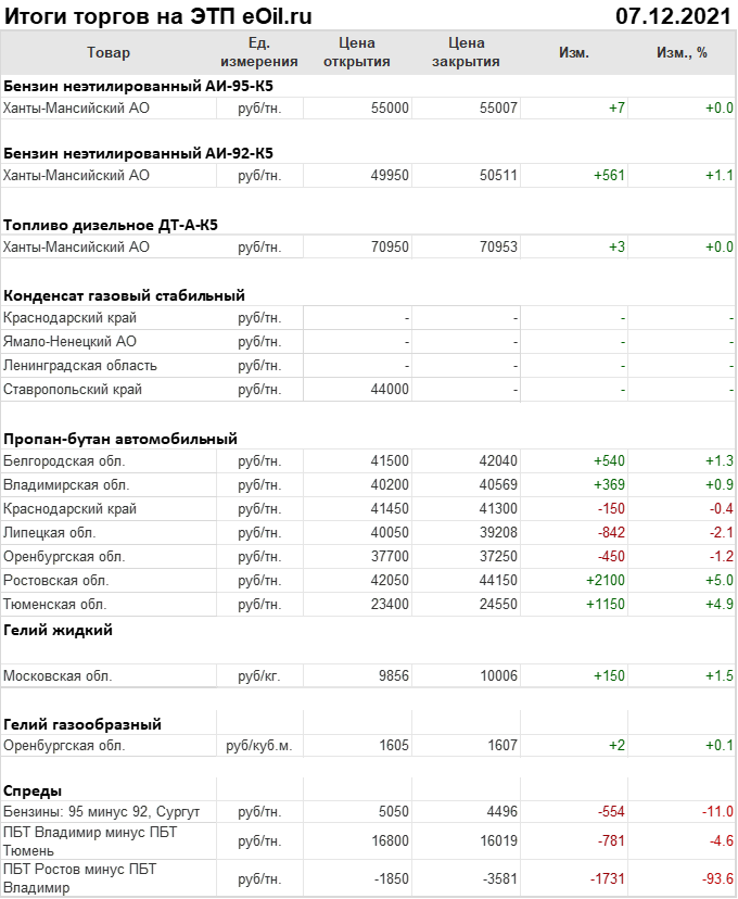 Итоги торгов на ЭТП eOil.ru 7 декабря 2021