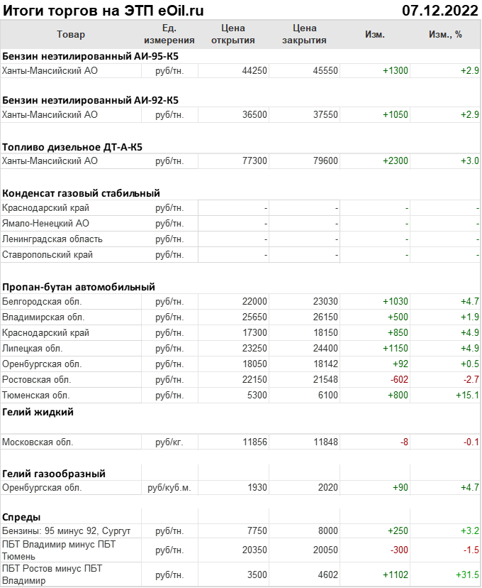 Итоги торгов на ЭТП eOil.ru 7 декабря 2022