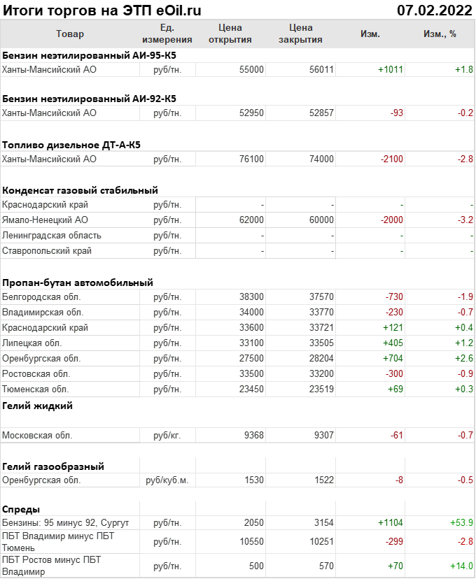 Итоги торгов на ЭТП eOil.ru 7 февраля 2022