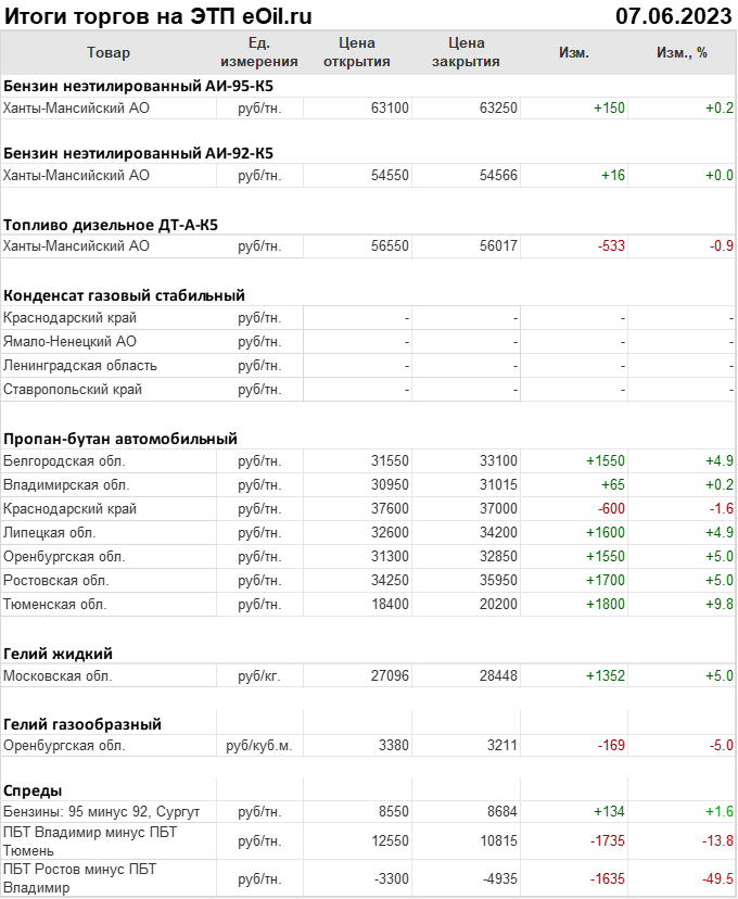 Итоги торгов на ЭТП eOil.ru 7 июня 2023