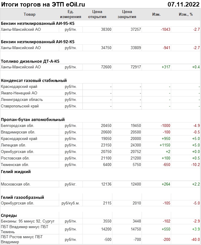 Итоги торгов на ЭТП eOil.ru 7 ноября 2022